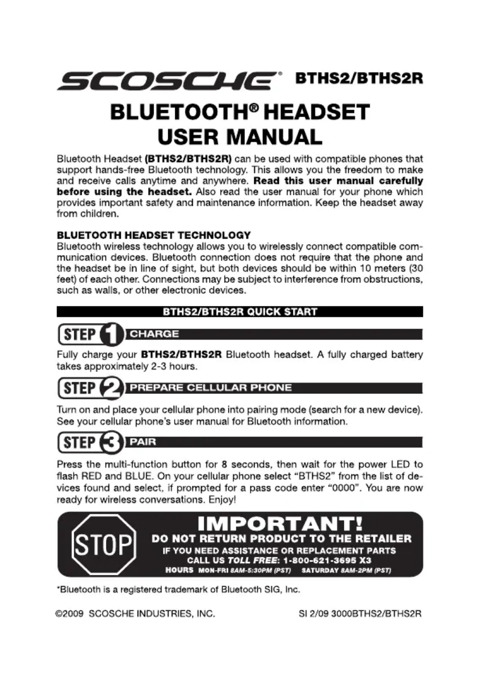 Retrouvez gratuitement la notice de l'appareil BTHS2R Scosche au format PDF.