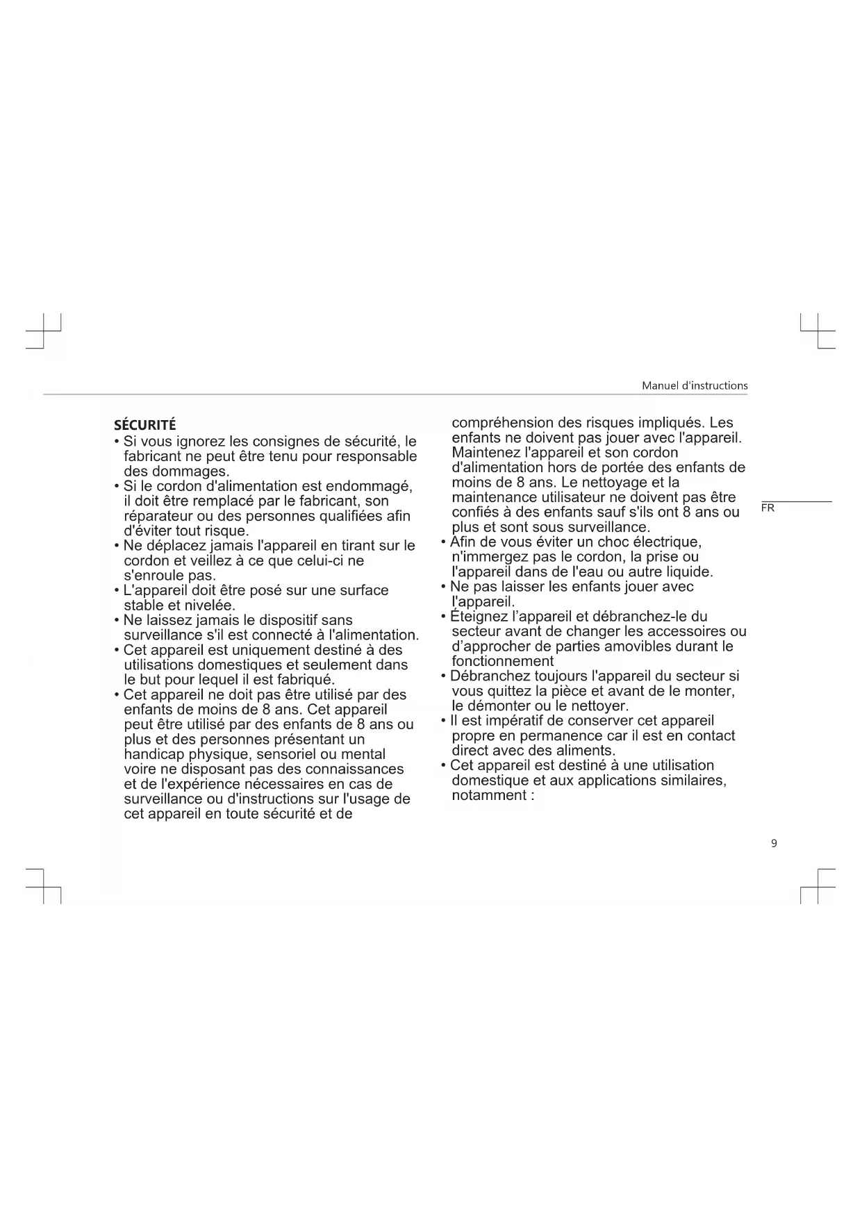 - Cet appareil est uniquement destiné à des utilisations domestiques et seulement dans le but pour lequel il est fabriqué.