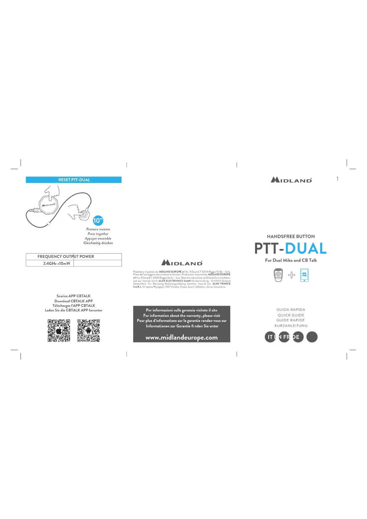 PTTDUAL - Talkie-walkie MIDLAND - Notice d'utilisation et mode d'emploi gratuit