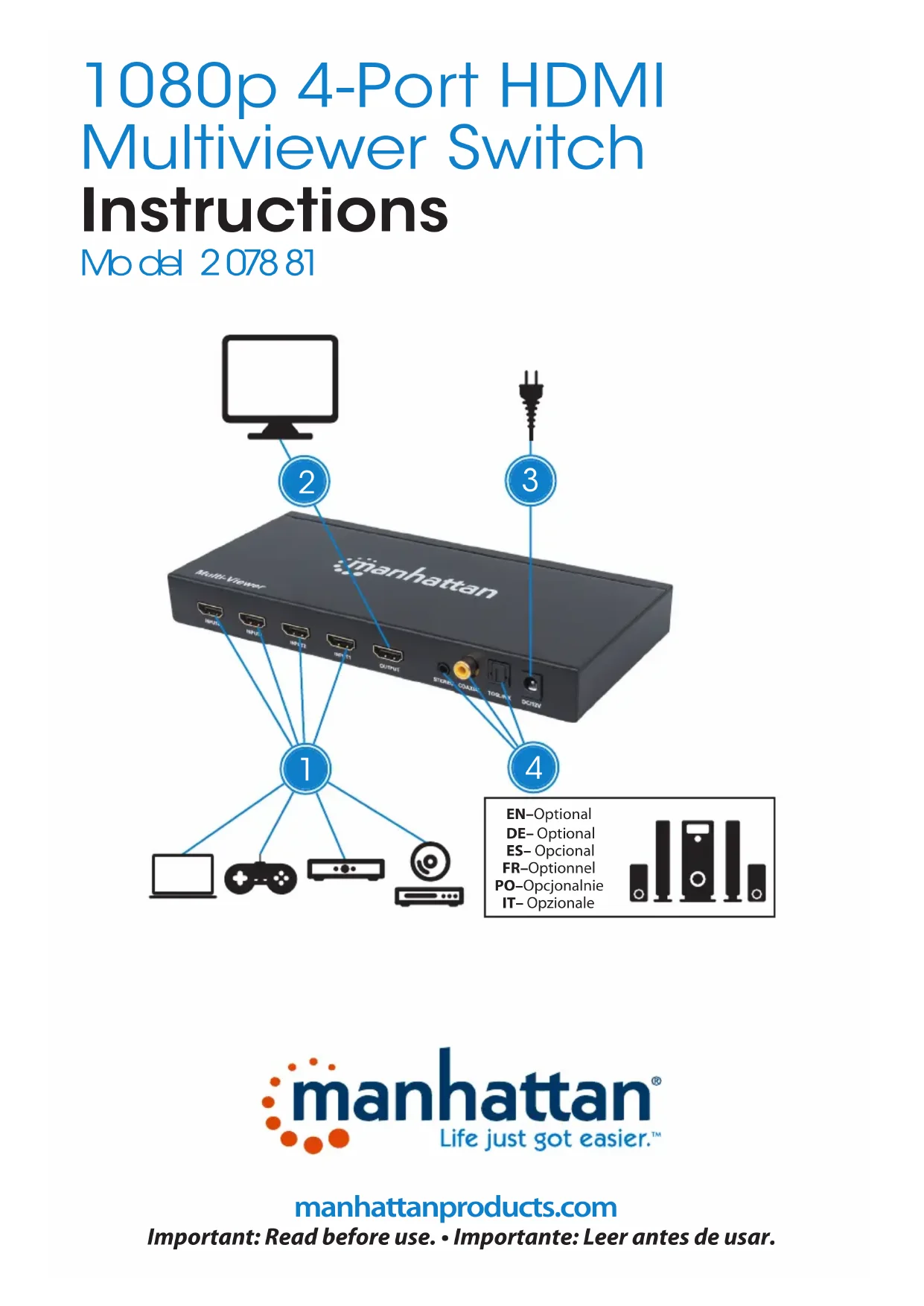 207881 - Commutateur HDMI MANHATTAN - Notice d'utilisation et mode d'emploi gratuit