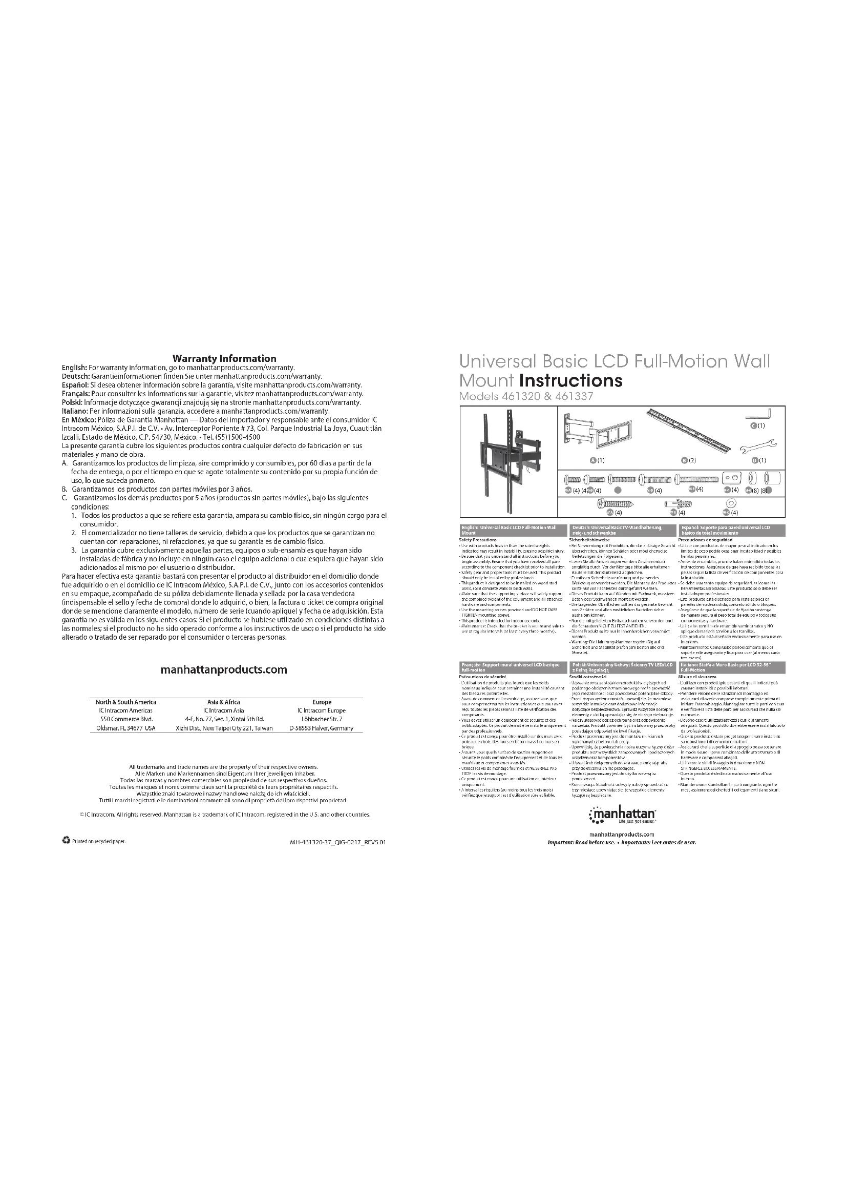 Téléchargez la notice de votre Support écran plat au format PDF gratuitement ! Retrouvez votre notice 461337 - MANHATTAN et reprennez votre appareil électronique en main. Sur cette page sont publiés tous les documents nécessaires à l'utilisation de votre appareil 461337 de la marque MANHATTAN.