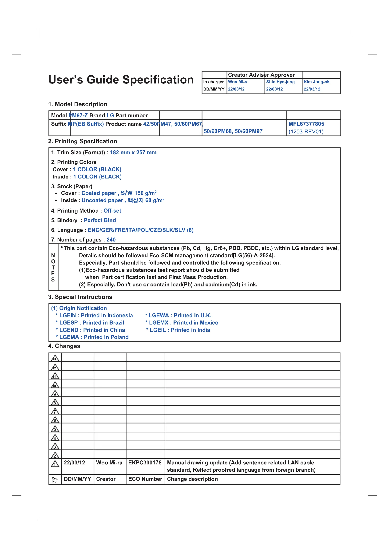 Retrouvez gratuitement la notice de l'appareil 50PM680S LG au format PDF.