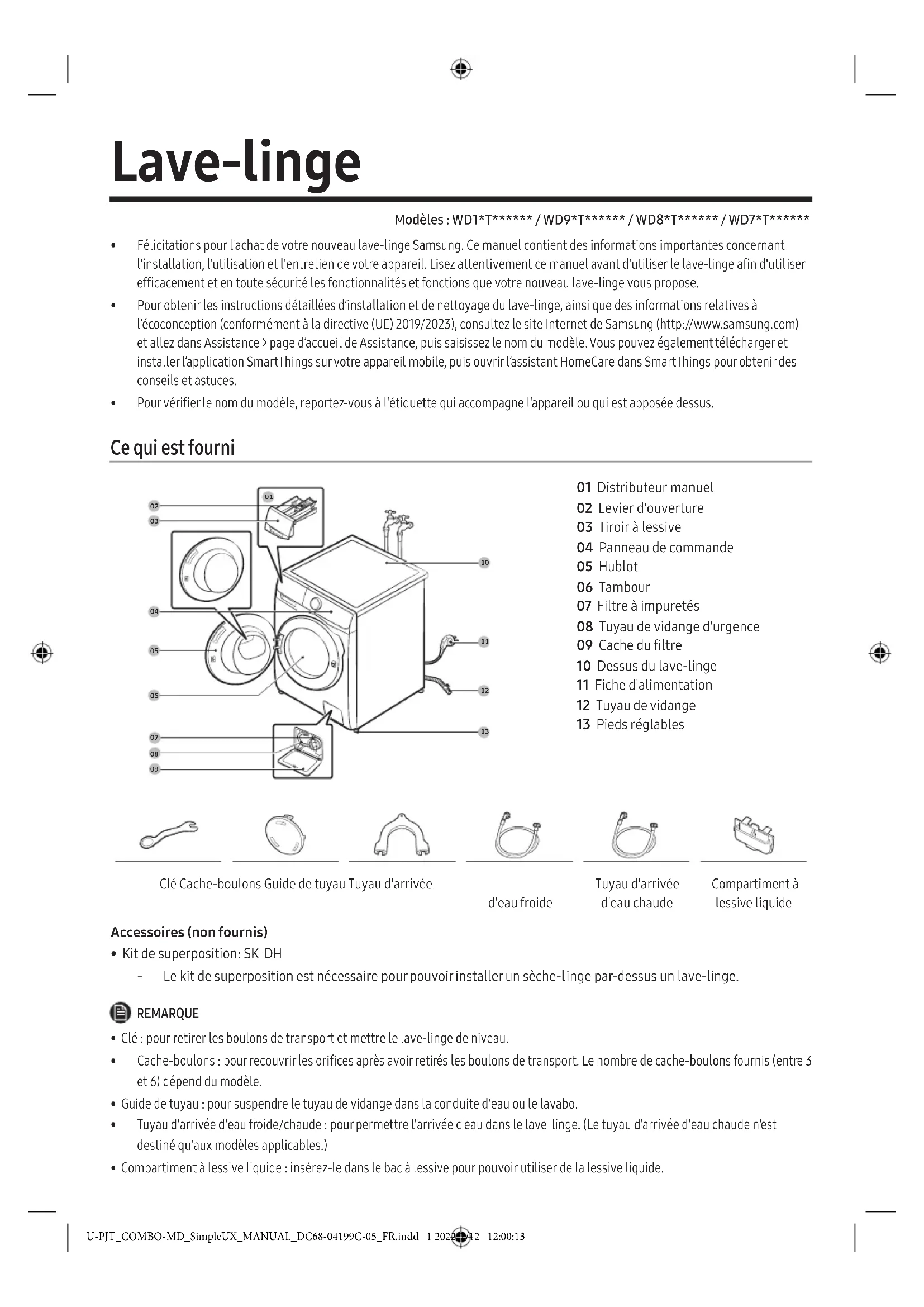 Retrouvez gratuitement la notice de l'appareil WD80T554ABE SAMSUNG au format PDF.