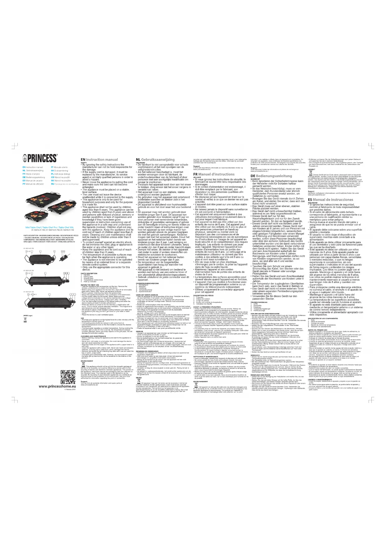 - Le gril de table va au lave-vaisselle. Nous recommandons toutefois de laver le gril de table à la main, car ce sera bénéfique pour la durée de vie du produit. ENVIRONNEMENT Cet appareil ne doit pas être jeté avec les déchets ménagers à la fin de sa durée de vie, il doit être remis à un centre de recyclage pour les appareils électriques et électroniques. Ce symbole sur l'appareil, le manuel d'utilisation et l'emballage attire votre attention sur un point important. Les matériaux utilisés dans cet appareil sont recyclables. En recyclant vos appareils, vous contribuez de manière significative à la protection de notre environnement. Renseignez-vous auprès des autorités locales pour connaître les centres de collecte des déchets. Support Vous retrouvez toutes les informations et pièces de rechange sur www.princesshome.eu! DEBedienungsanleitung SICHERHEIT