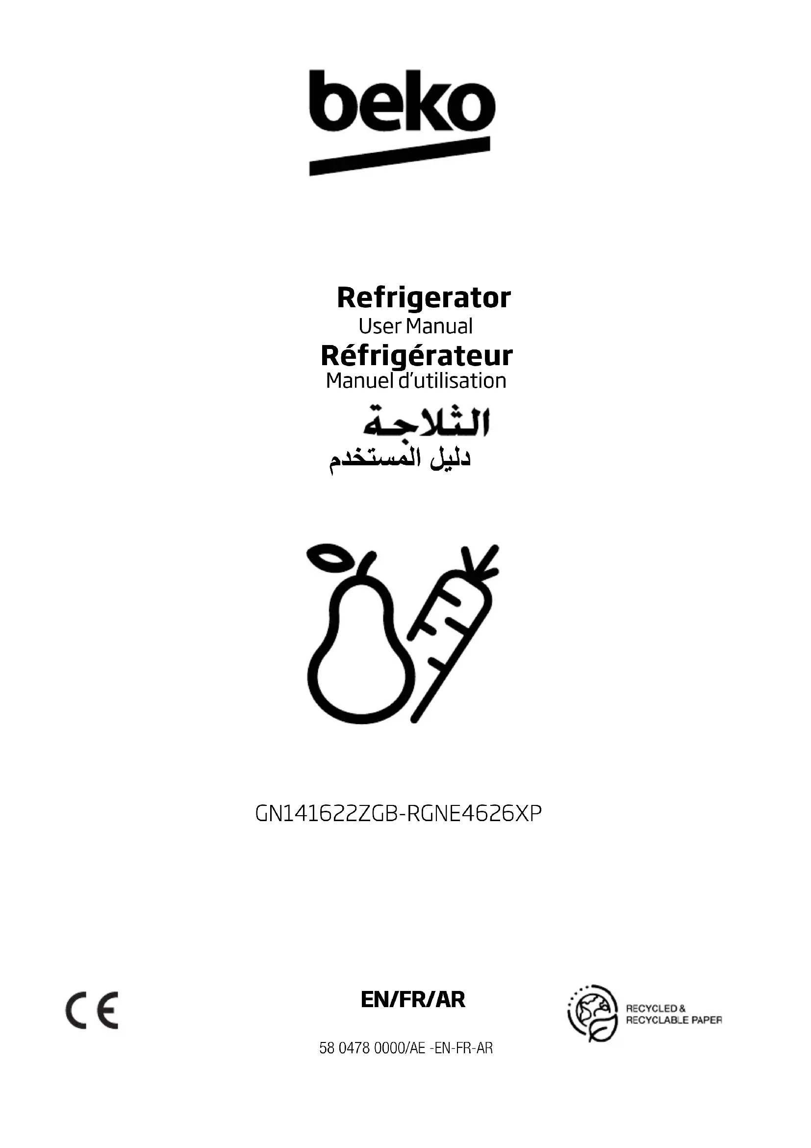 RGNE4626XP - Réfrigérateur BEKO - Notice d'utilisation et mode d'emploi gratuit