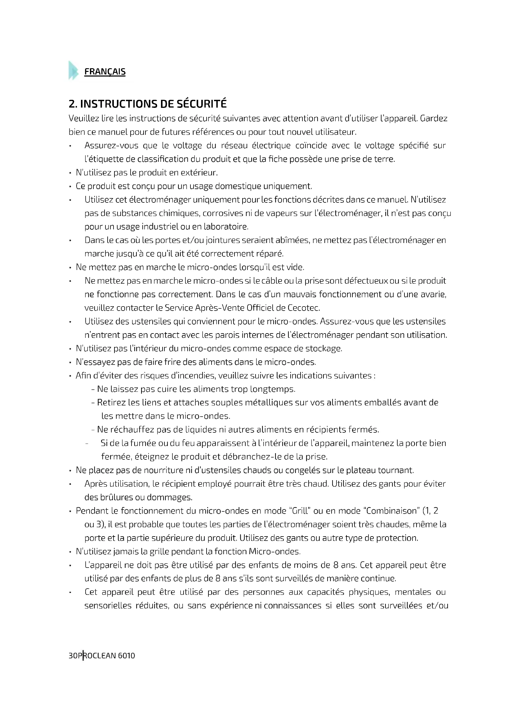 ProClean 6010 - Four à micro-ondes CECOTEC - Notice d'utilisation et mode d'emploi gratuit