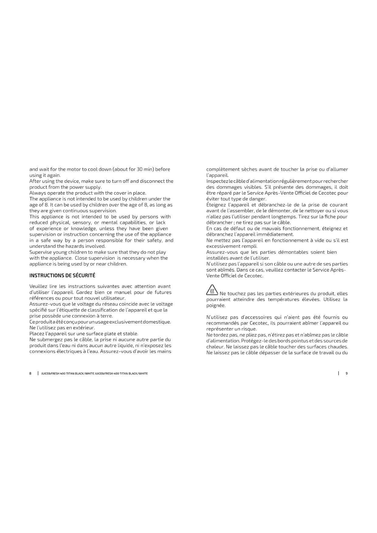 MODE D'EMPLOI Juice&Fresh 400 Titan CECOTEC