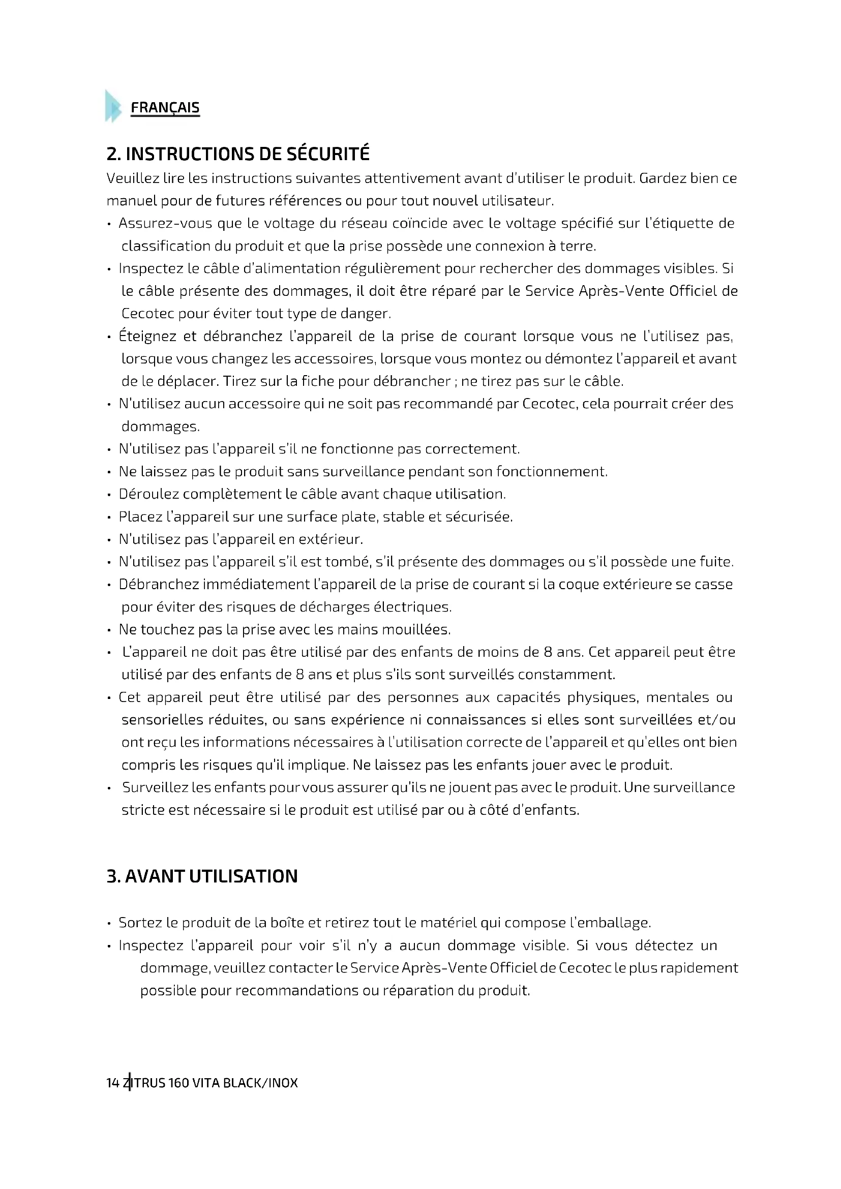 MODE D'EMPLOI Zitrus 160 Vita Inox CECOTEC