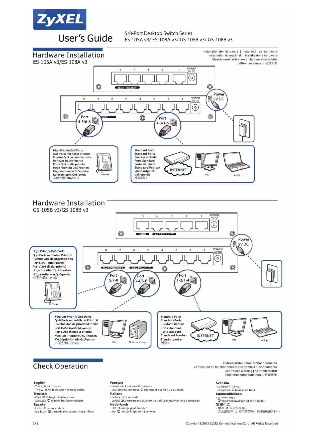 ES108A V3 - Switch réseau ZYXEL - Notice d'utilisation et mode d'emploi gratuit