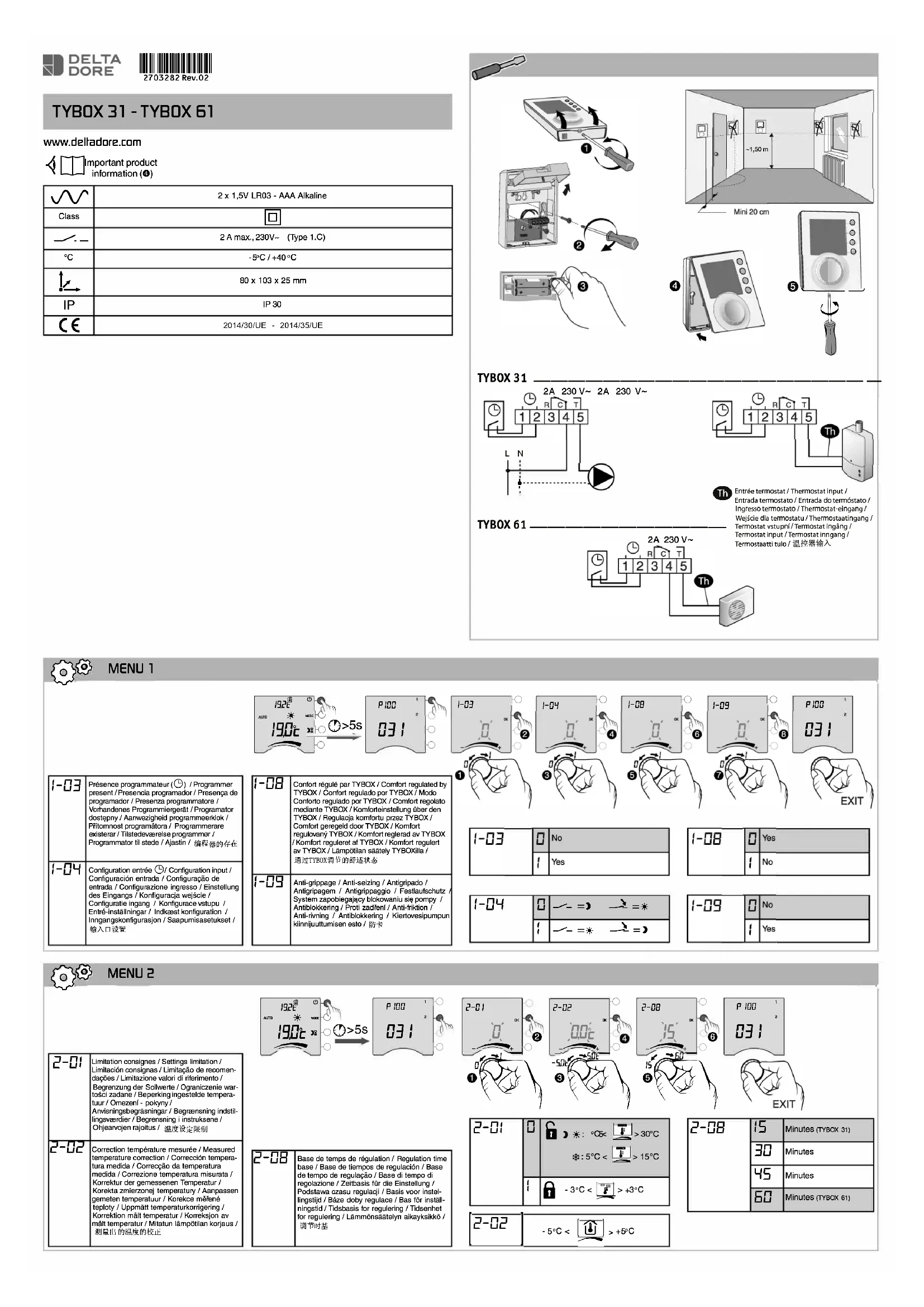 Téléchargez la notice de votre Thermostat au format PDF gratuitement ! Retrouvez votre notice Tybox 31 - DELTA DORE et reprennez votre appareil électronique en main. Sur cette page sont publiés tous les documents nécessaires à l'utilisation de votre appareil Tybox 31 de la marque DELTA DORE.