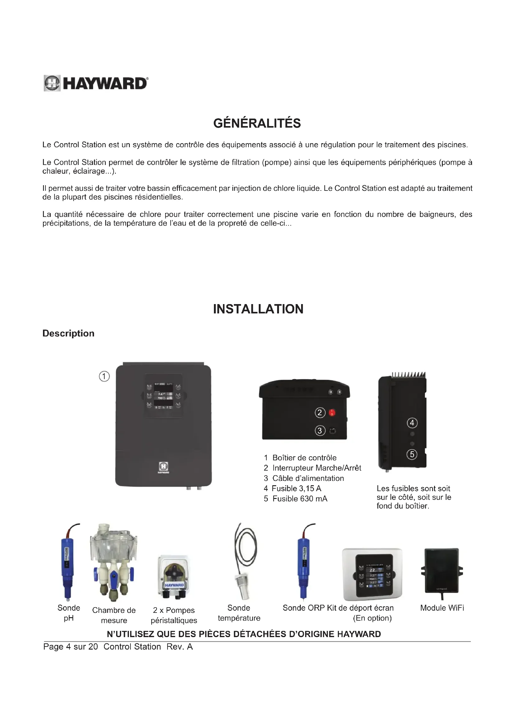 Retrouvez gratuitement la notice de l'appareil Control Station HAYWARD au format PDF.