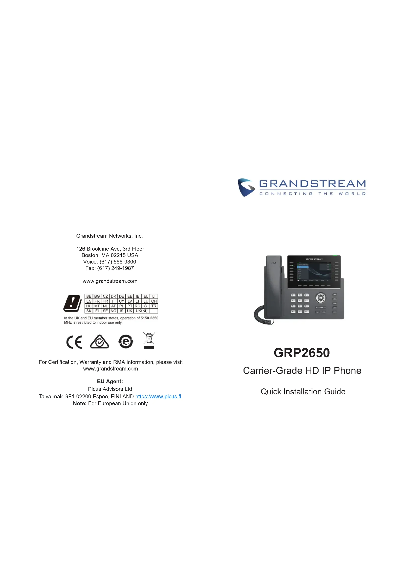 Retrouvez gratuitement la notice de l'appareil GRP2650 GRANDSTREAM au format PDF.