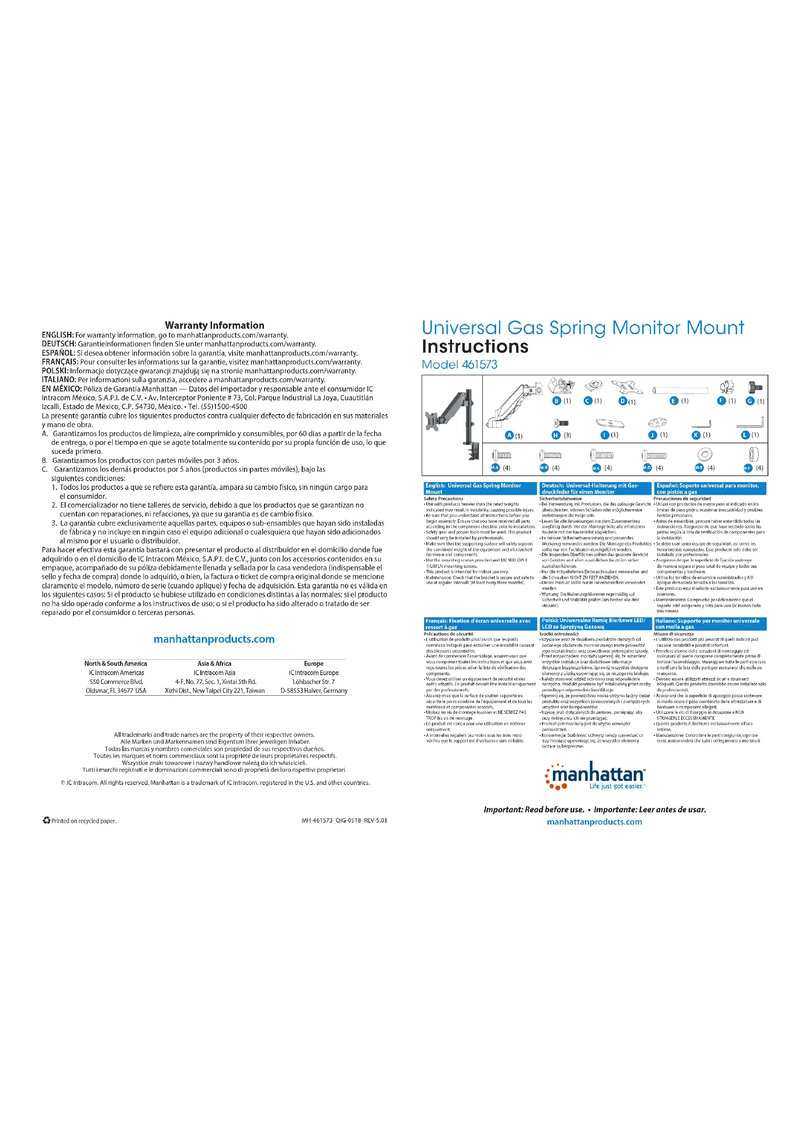 Téléchargez la notice de votre Support écran plat au format PDF gratuitement ! Retrouvez votre notice 461573 - MANHATTAN et reprennez votre appareil électronique en main. Sur cette page sont publiés tous les documents nécessaires à l'utilisation de votre appareil 461573 de la marque MANHATTAN.
