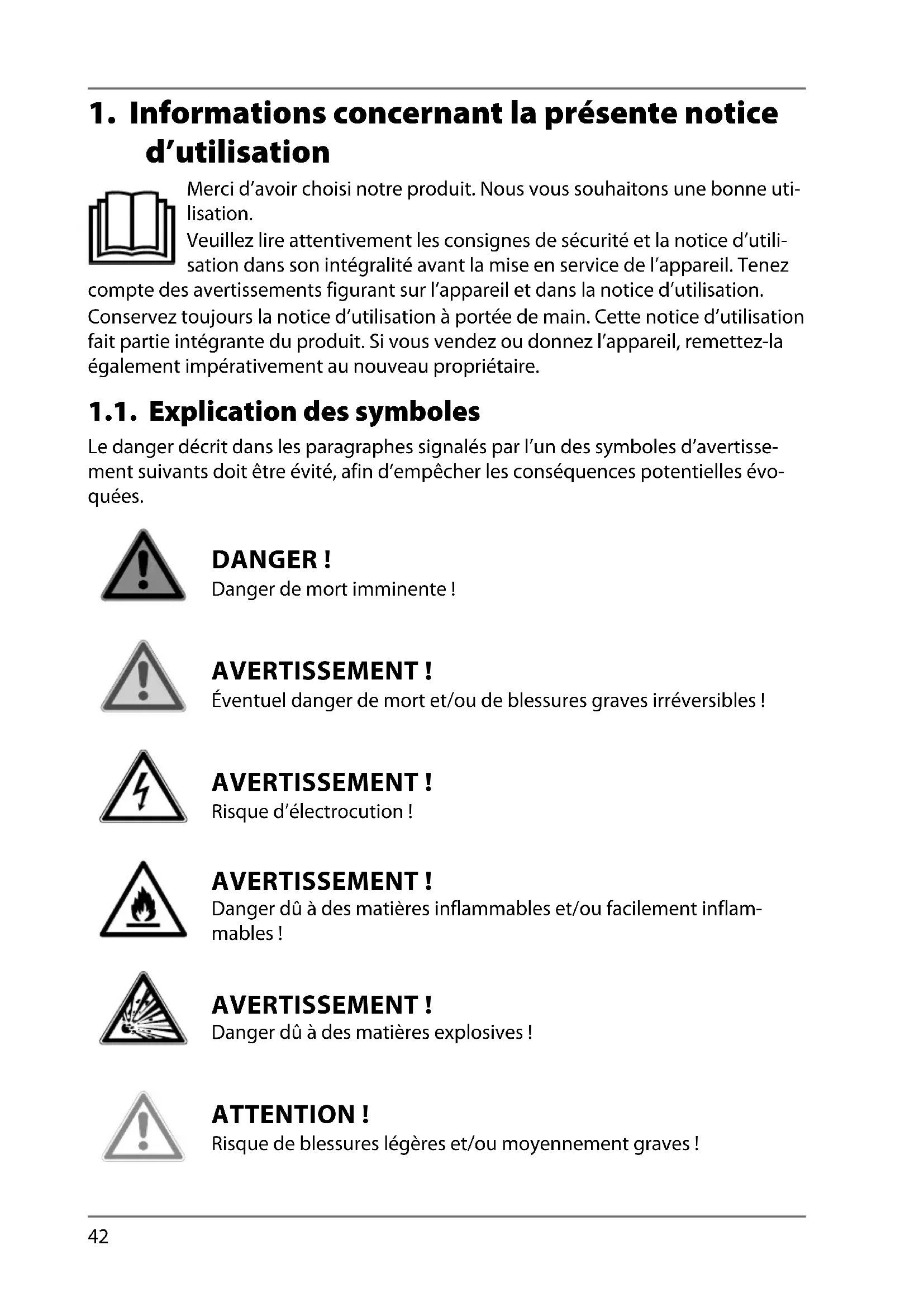 1. Informations concernant la présente notice d’utilisation ...................... 42