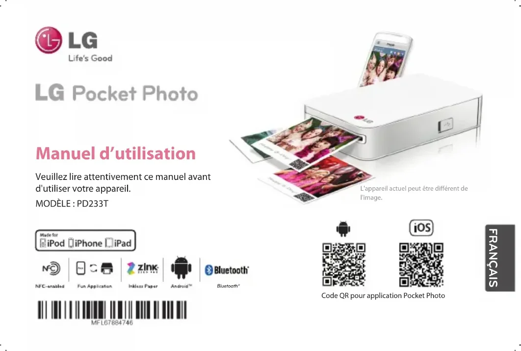 Retrouvez gratuitement la notice de l'appareil Pocket Photo PD233T LG au format PDF.