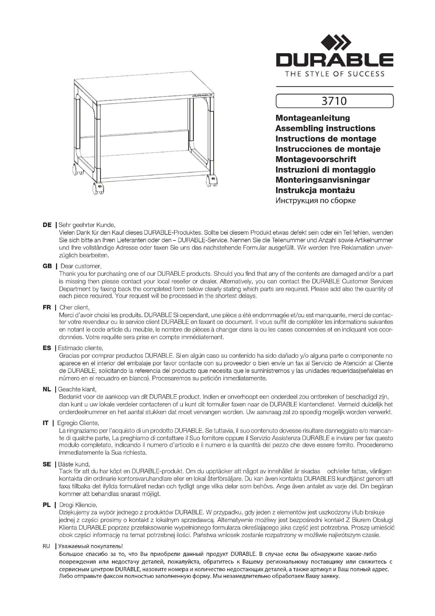 3710 - Meuble de rangement roulant Durable - Notice d'utilisation et mode d'emploi gratuit