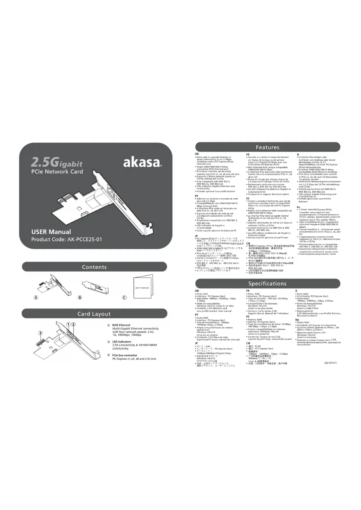 AKPCCE2501 - Carte réseau / adaptateur AKASA - Notice d'utilisation et mode d'emploi gratuit
