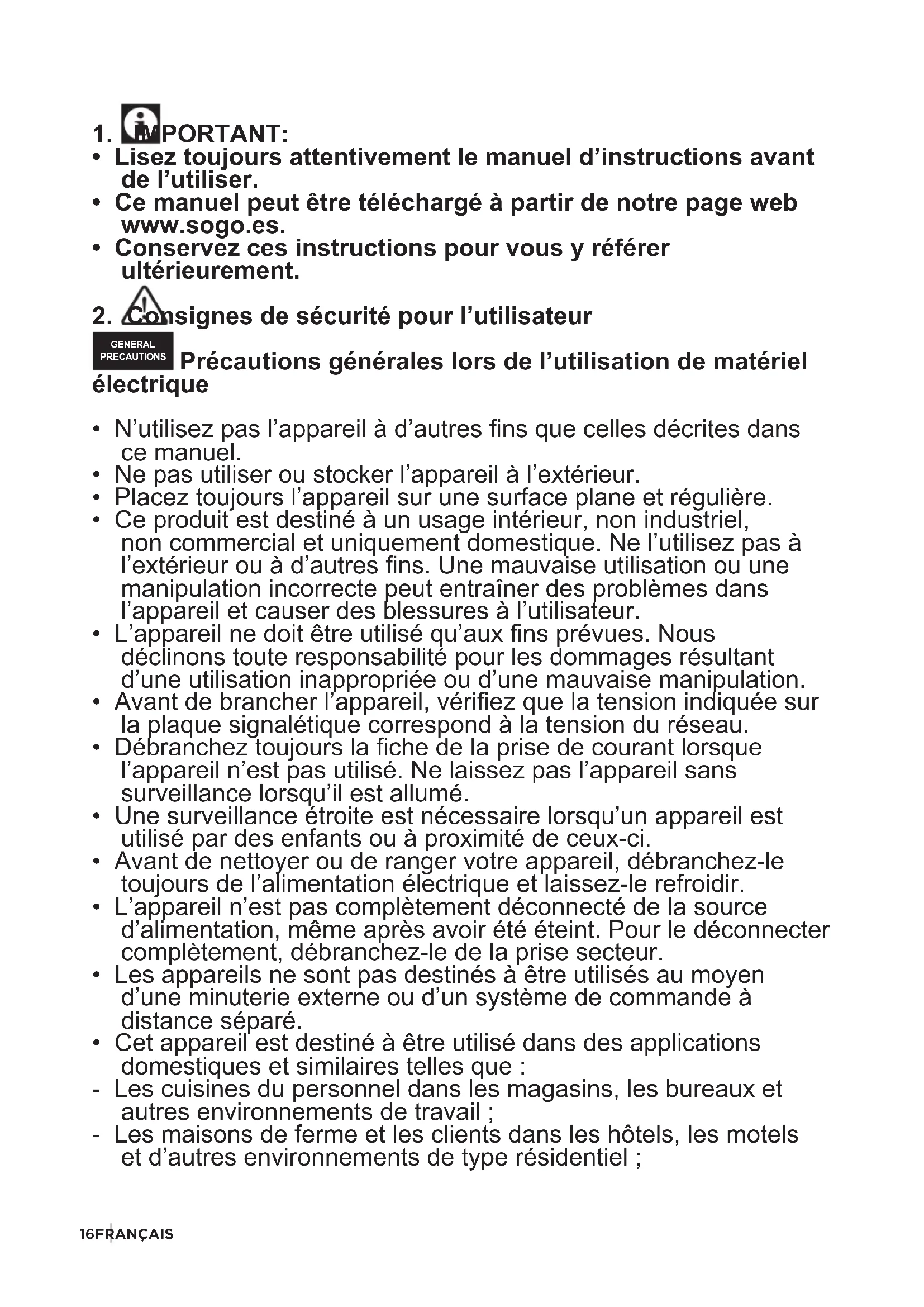 - Ce manuel peut être téléchargé à partir de notre page web www.sogo.es.