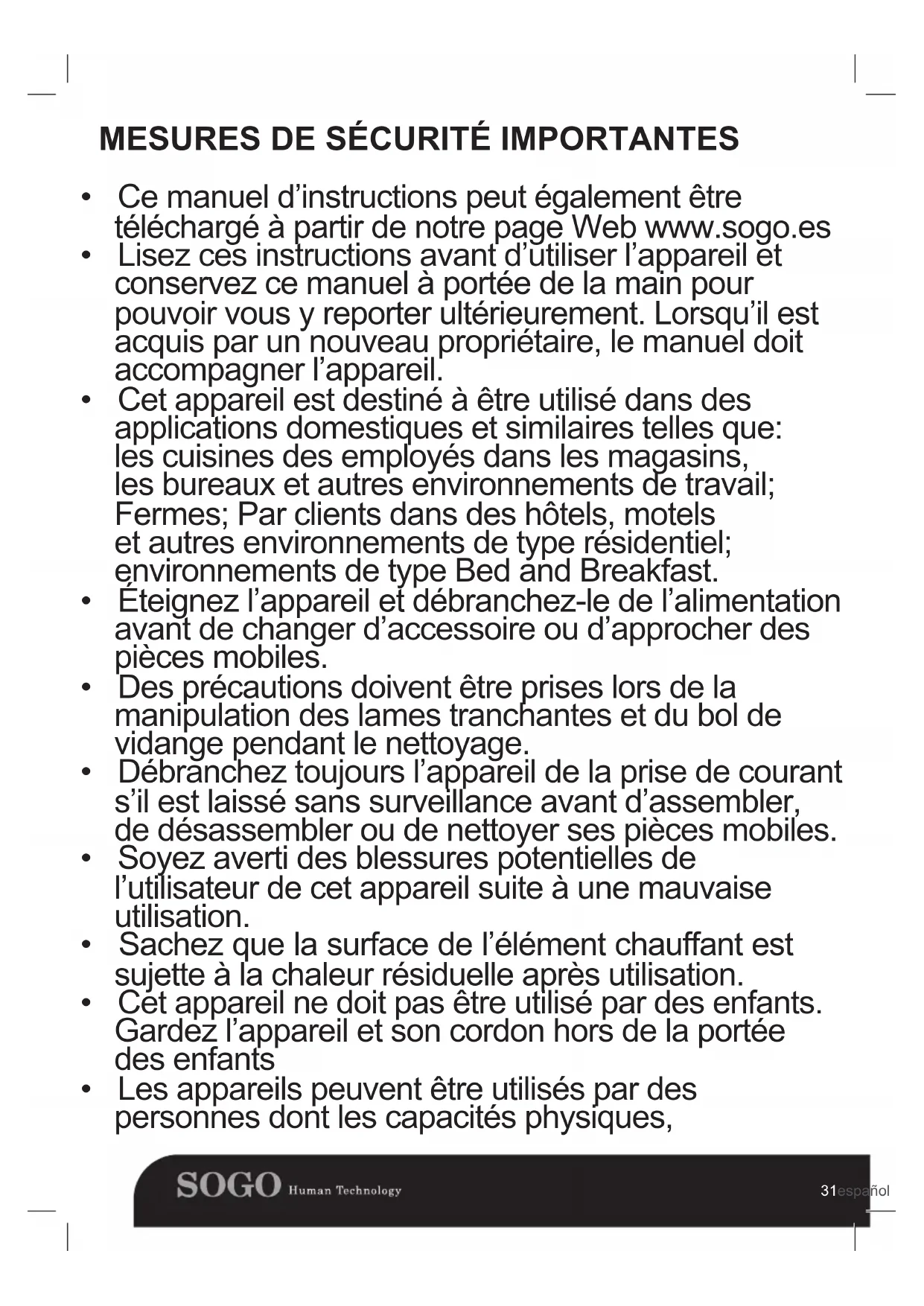 - Ce manuel d’instructions peut également être téléchargé à partir de notre page Web www.sogo.es