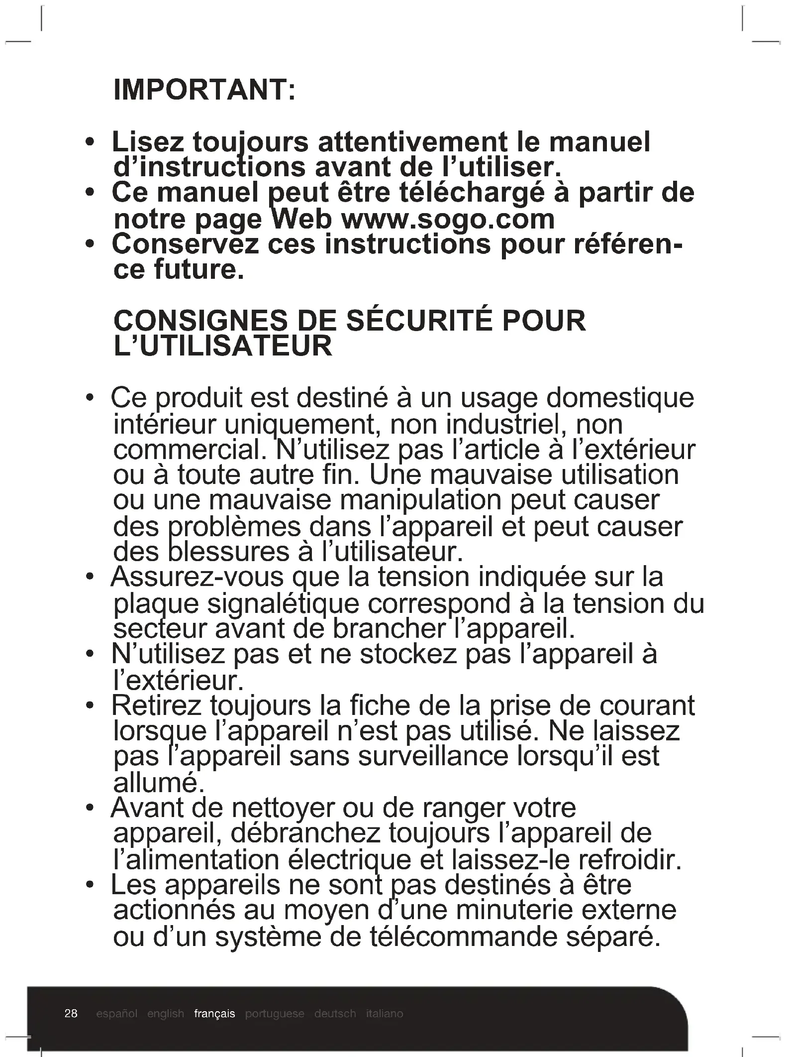 Retrouvez gratuitement la notice de l'appareil SS16180 Sogo au format PDF.