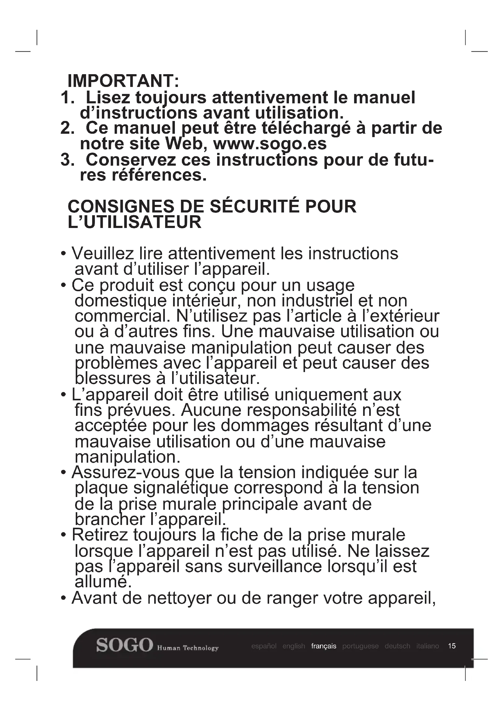 Retrouvez gratuitement la notice de l'appareil SS5560 Sogo au format PDF.