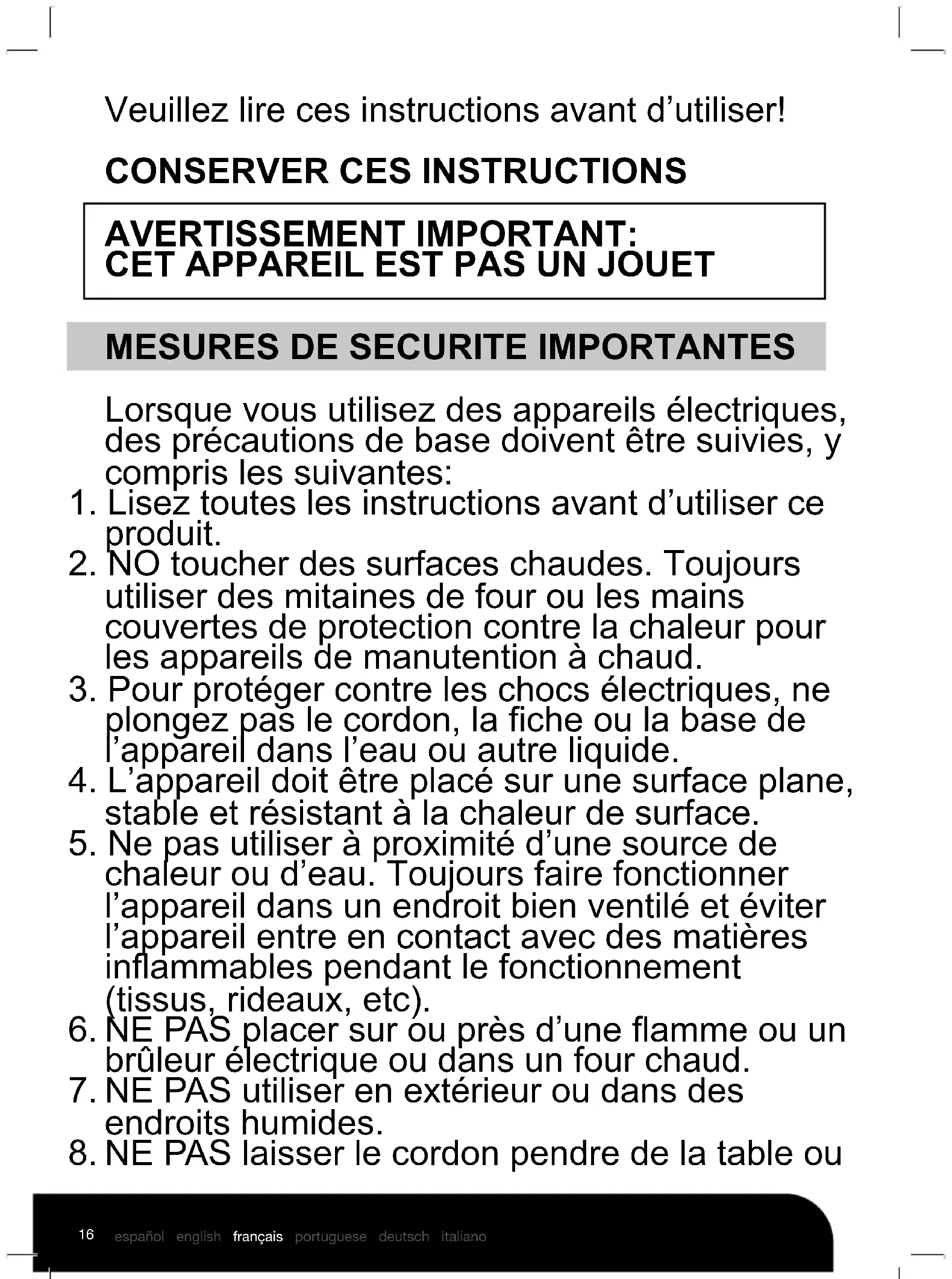 17español english français portuguese du comptoir ni toucher des surfaces chaudes.