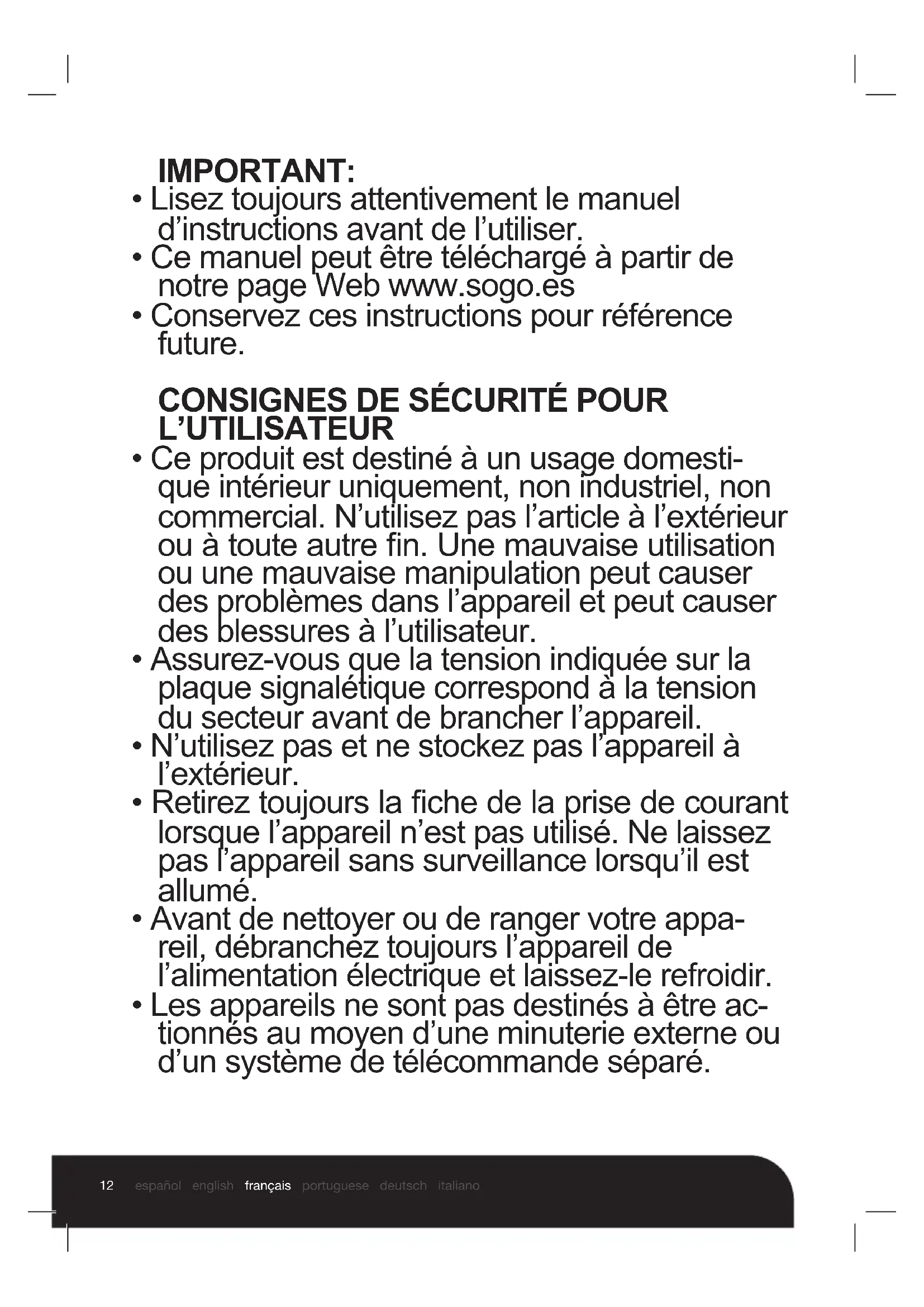 - Ce manuel peut être téléchargé à partir de notre page Web www.sogo.es