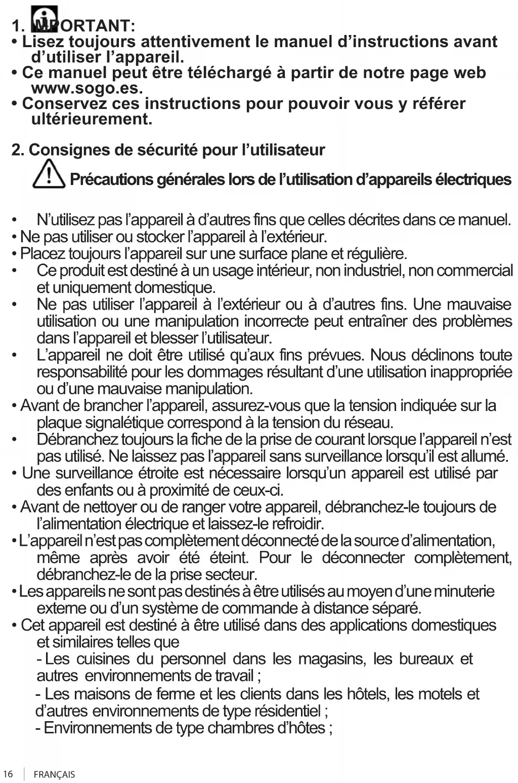 - Ce manuel peut être téléchargé à partir de notre page web www.sogo.es.