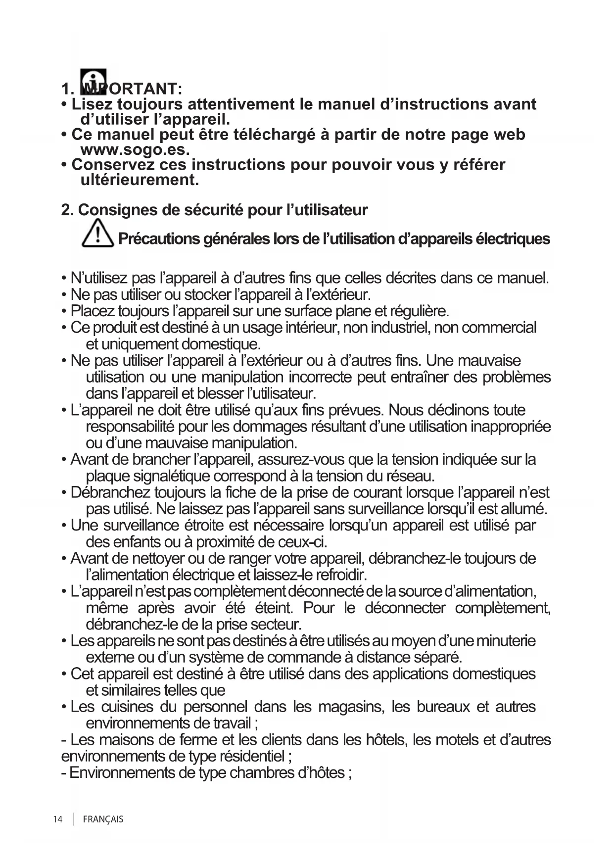 - Ce manuel peut être téléchargé à partir de notre page web www.sogo.es.