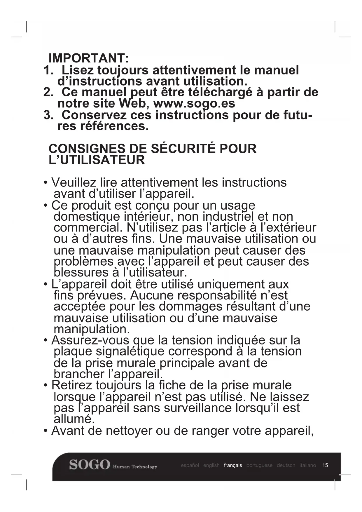 Retrouvez gratuitement la notice de l'appareil SS5565 Sogo au format PDF.