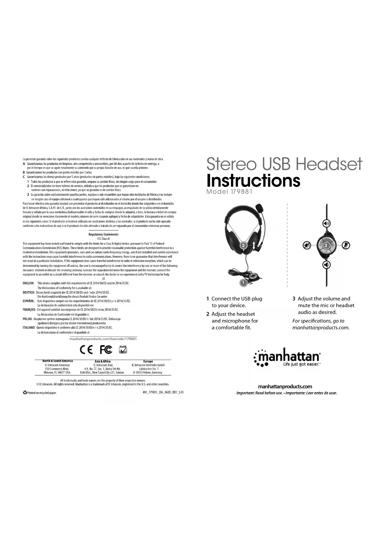Retrouvez gratuitement la notice de l'appareil 179881 MANHATTAN au format PDF.