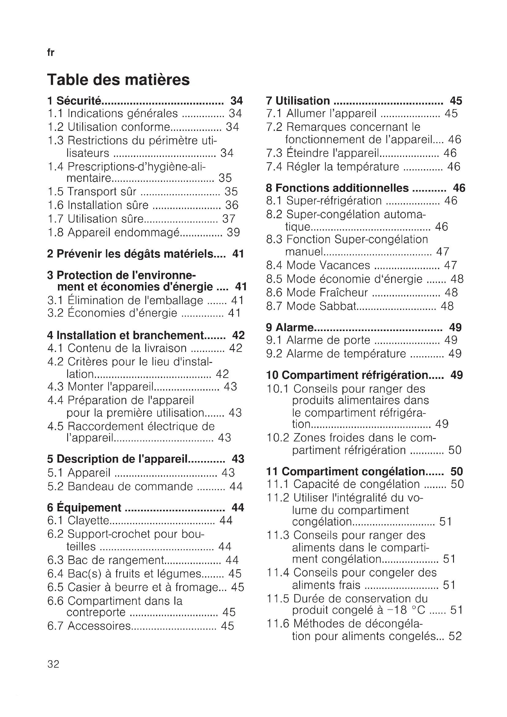 11.1 Capacité de congélation ........50