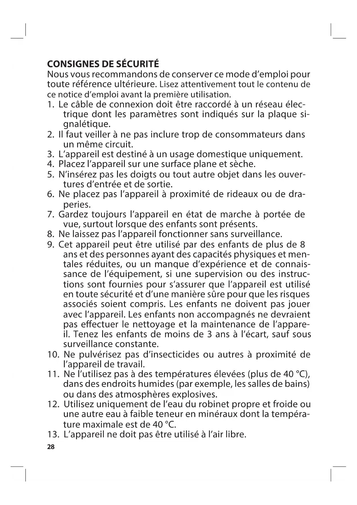 13. L’appareil ne doit pas être utilisé à l’air libre.29