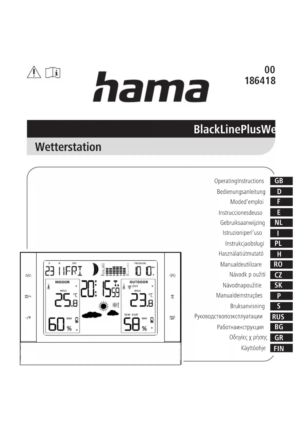 Black Line Plus 186418 - Station Météo HAMA - Notice d'utilisation et mode d'emploi gratuit