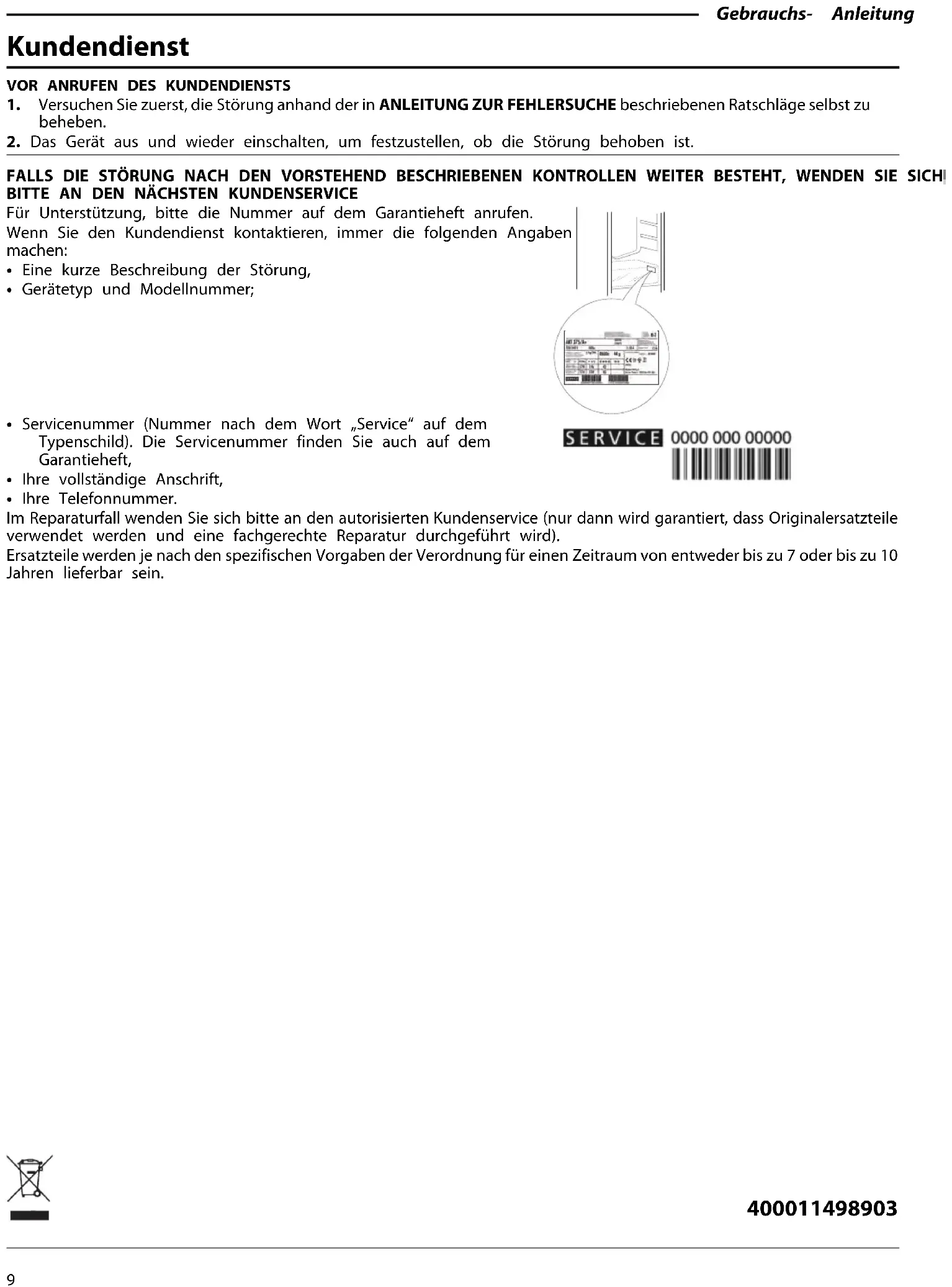 - le numéro de service (numéro après le mot Service sur la plaque signalétique). Le numéro de série est également disponible dans le livret de garantie ;
