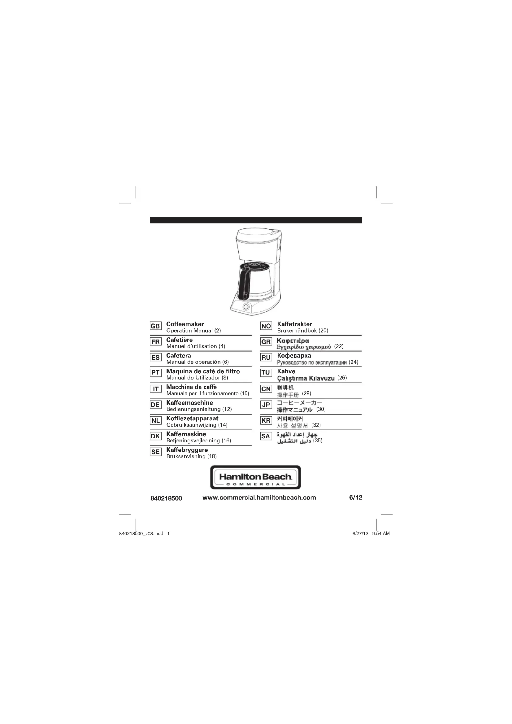 HDC500C - Machine à café HAMILTON BEACH - Notice d'utilisation et mode d'emploi gratuit