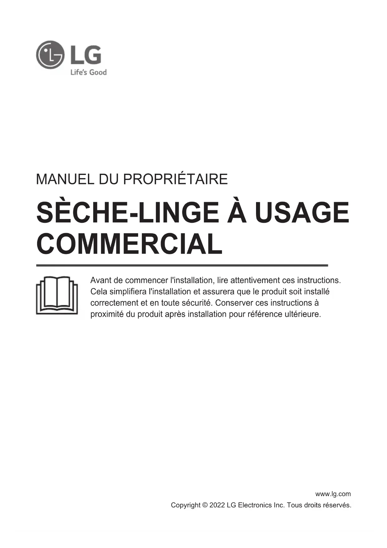 - Avant d’être utilisée, le sèche-linge doit être installée conformément aux directives de ce manuel.