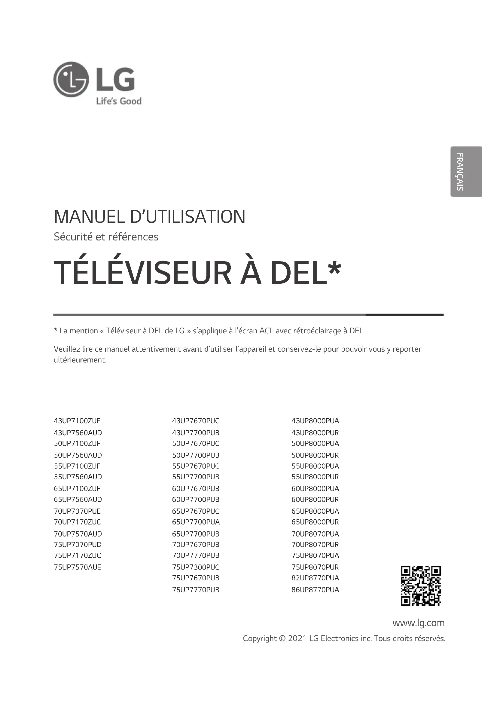 MODE D'EMPLOI 75UP7300PUC LG