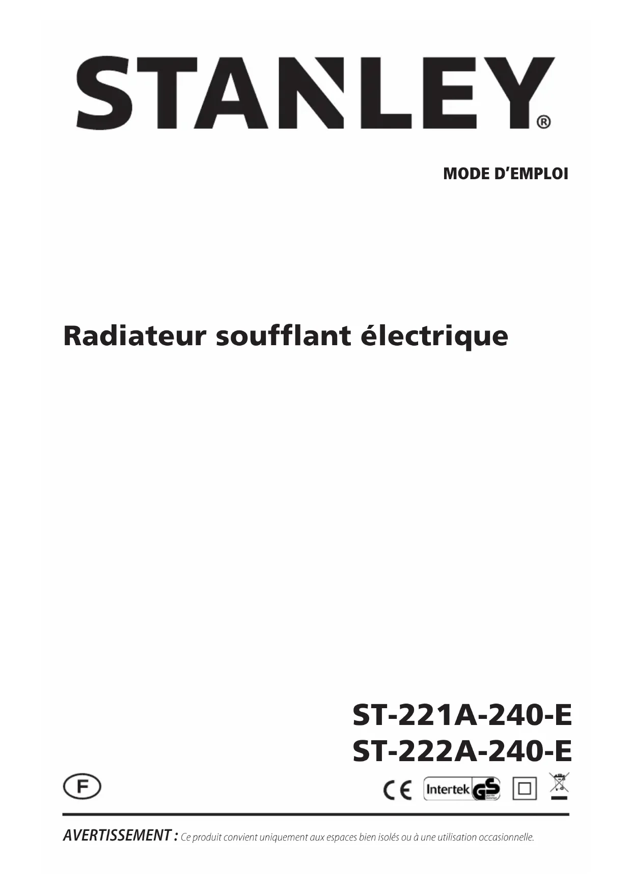ST222A240E - Chauffage STANLEY - Notice d'utilisation et mode d'emploi gratuit