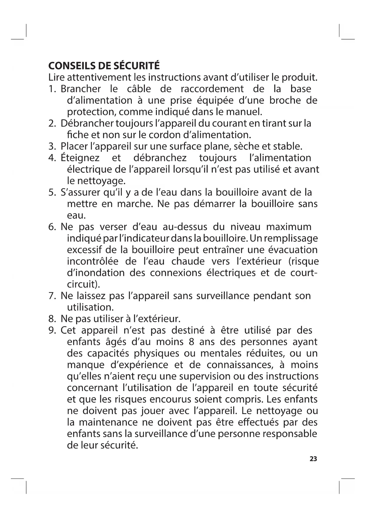 11. Ne pas immerger la bouilloire dans l’eau pendant le