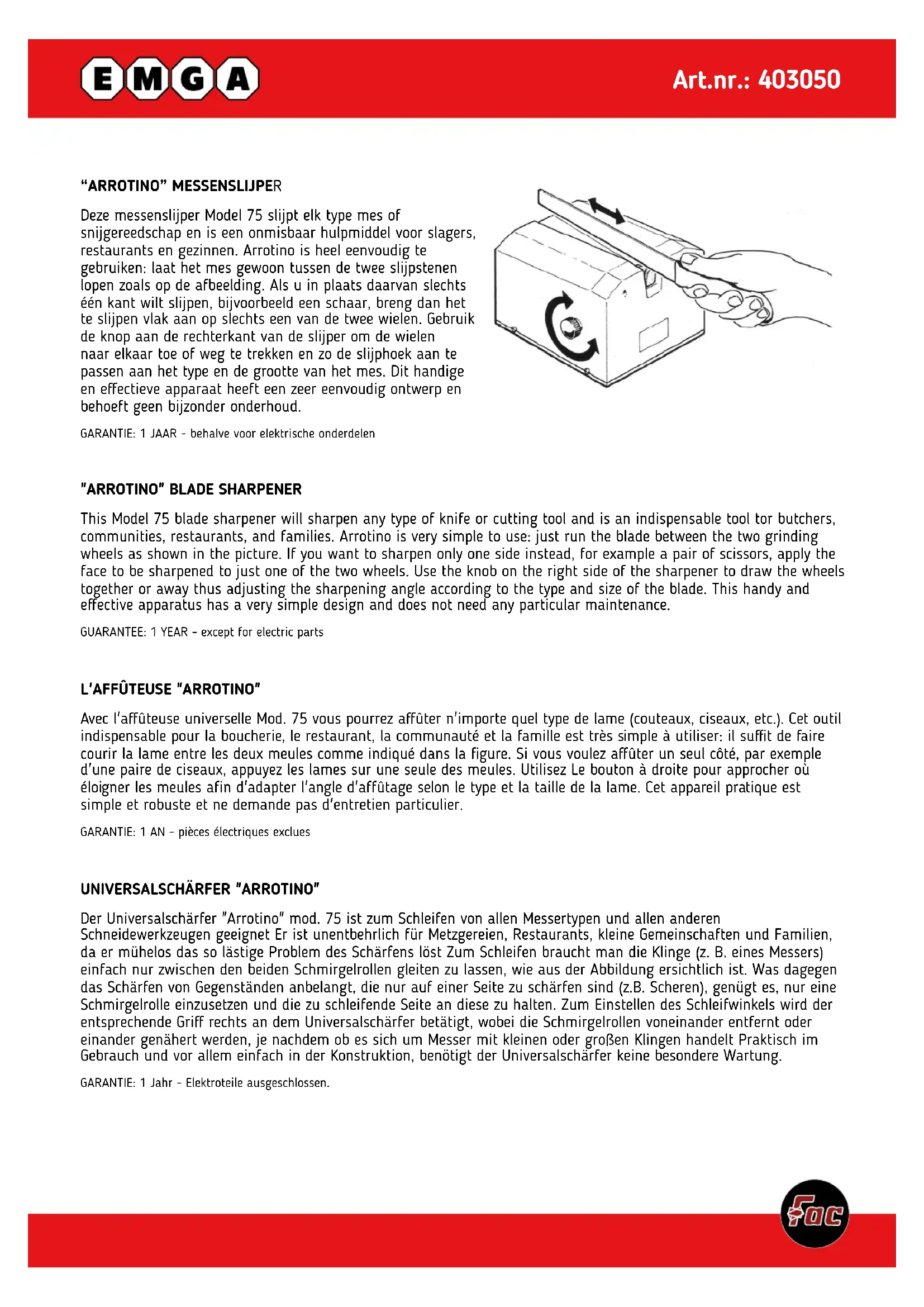403050 - Aiguisoir Emga - Notice d'utilisation et mode d'emploi gratuit