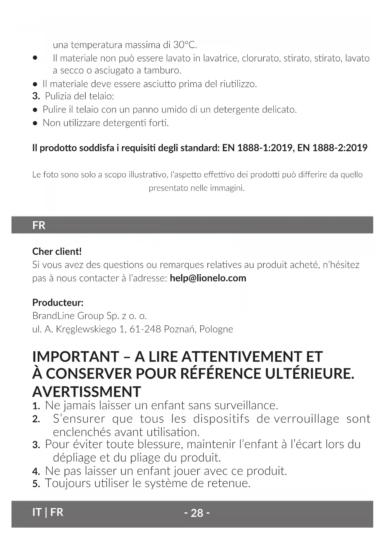 aache spéciale (24).‑ 32 ‑FR Aenon ! La sécurisaon automaque de la poussee dépend de la posion du dossier. Dans le cas du dossier abaissé au maximum, le crochet devrait entrer tout seul à l’endroit approprié (23). Entreen et lavage