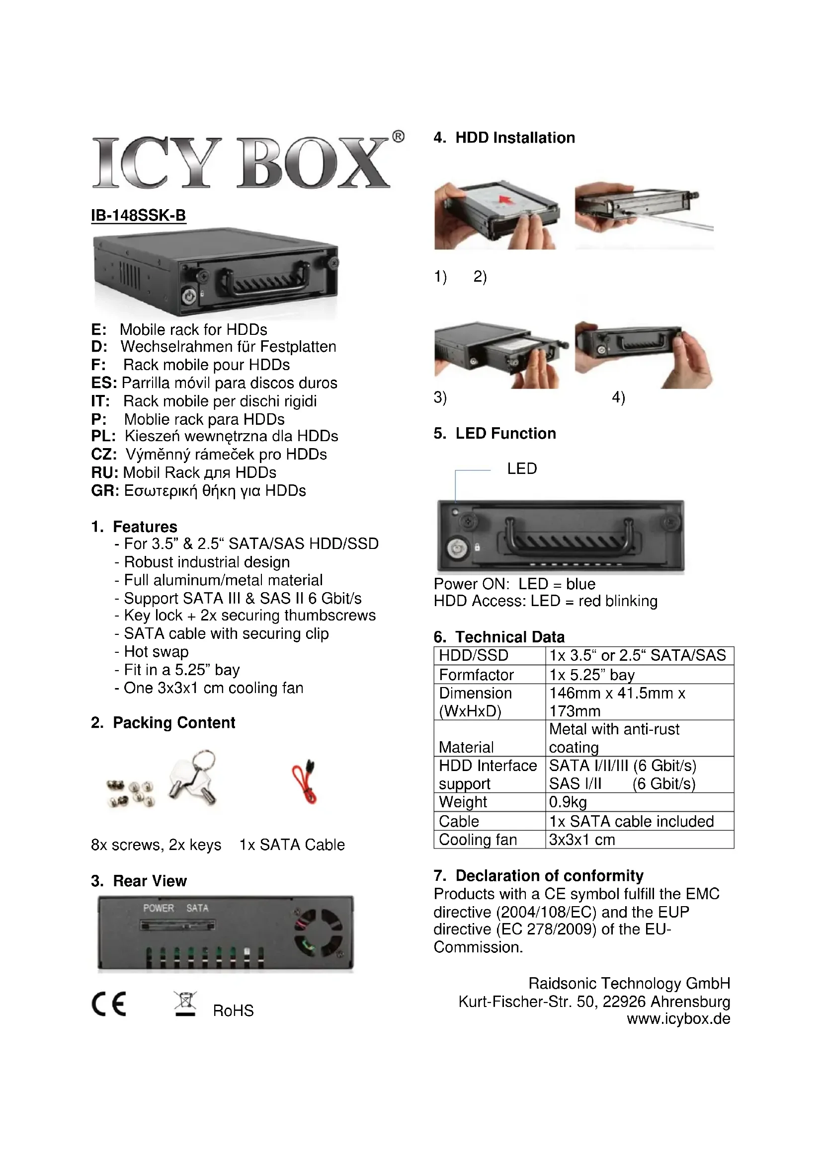 Carrier IB148SSKB - Boîtier pour disque dur Icy Box - Notice d'utilisation et mode d'emploi gratuit