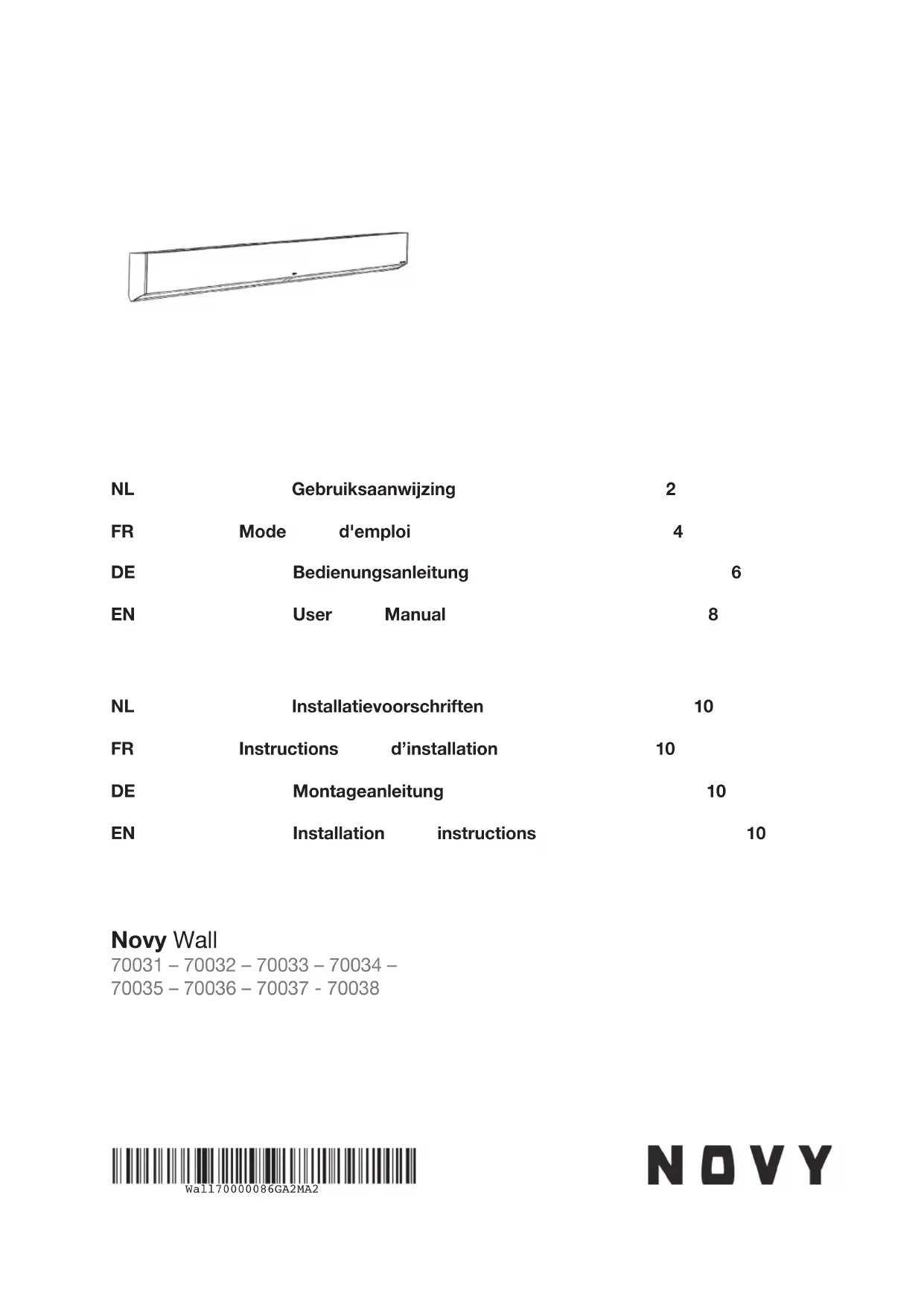 Wall 70031 - Éclairage NOVY - Notice d'utilisation et mode d'emploi gratuit