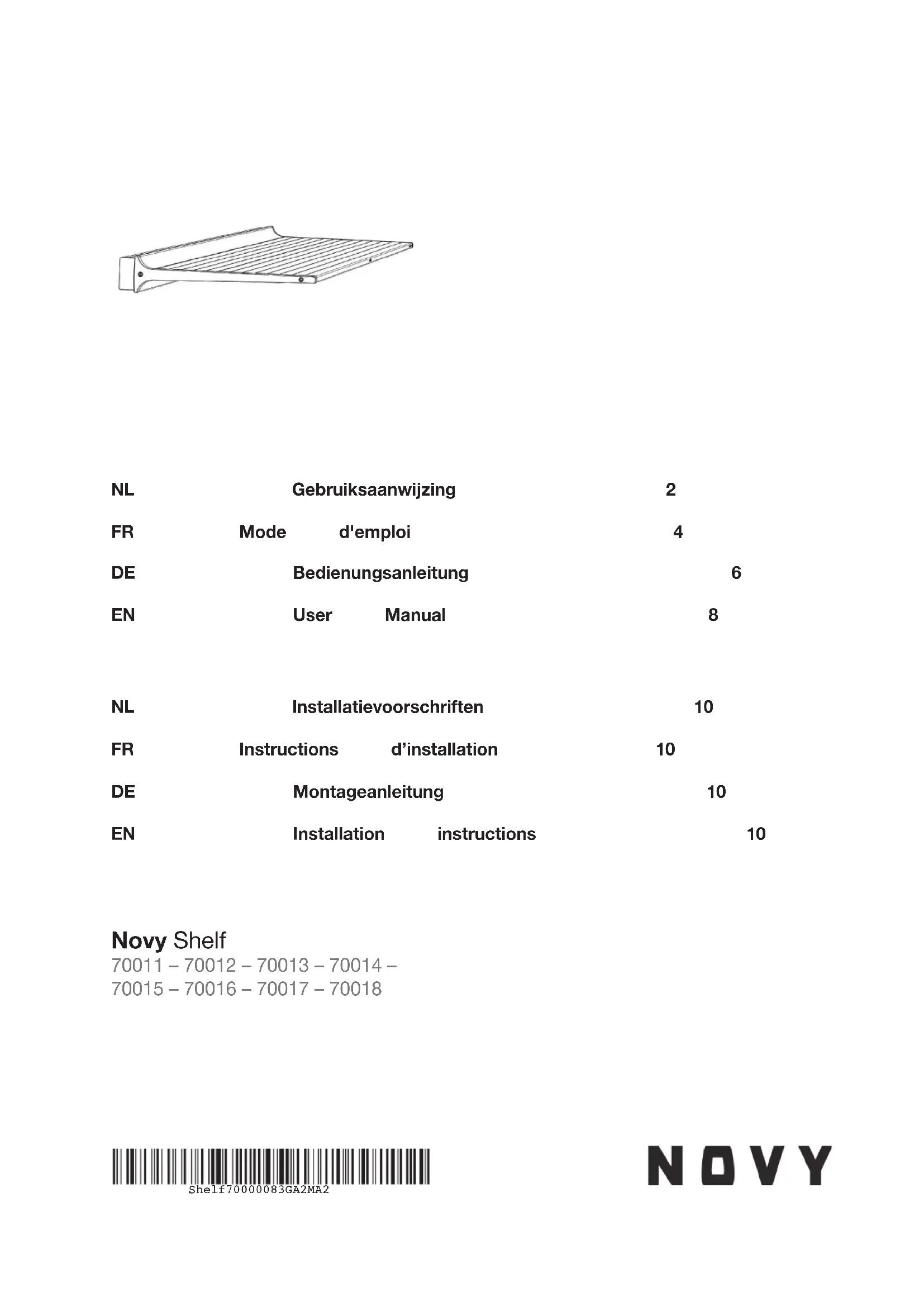 Retrouvez gratuitement la notice de l'appareil Shelf 70013 NOVY au format PDF.