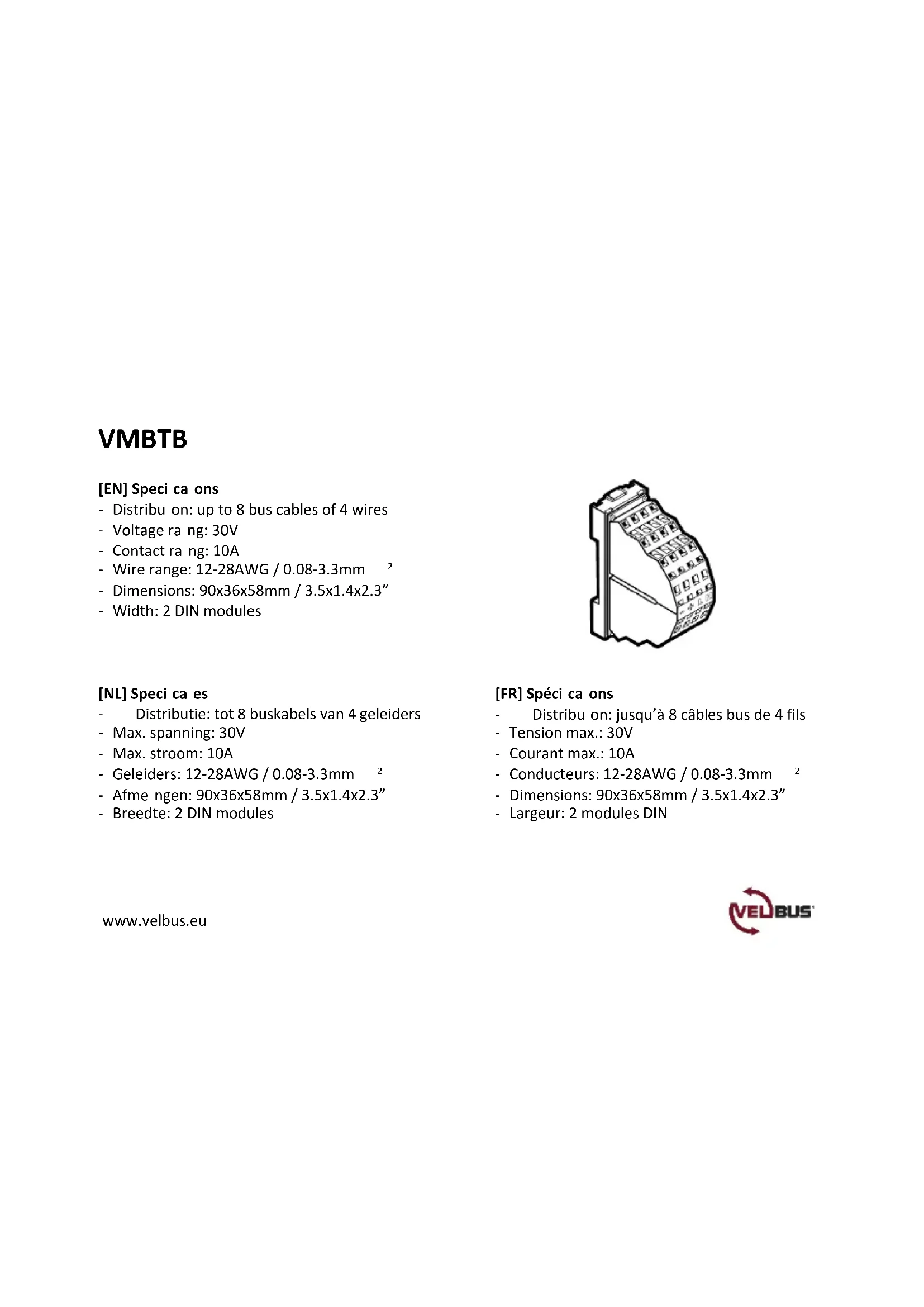 VMBTB - Composant électrique modulaire Velbus - Notice d'utilisation et mode d'emploi gratuit