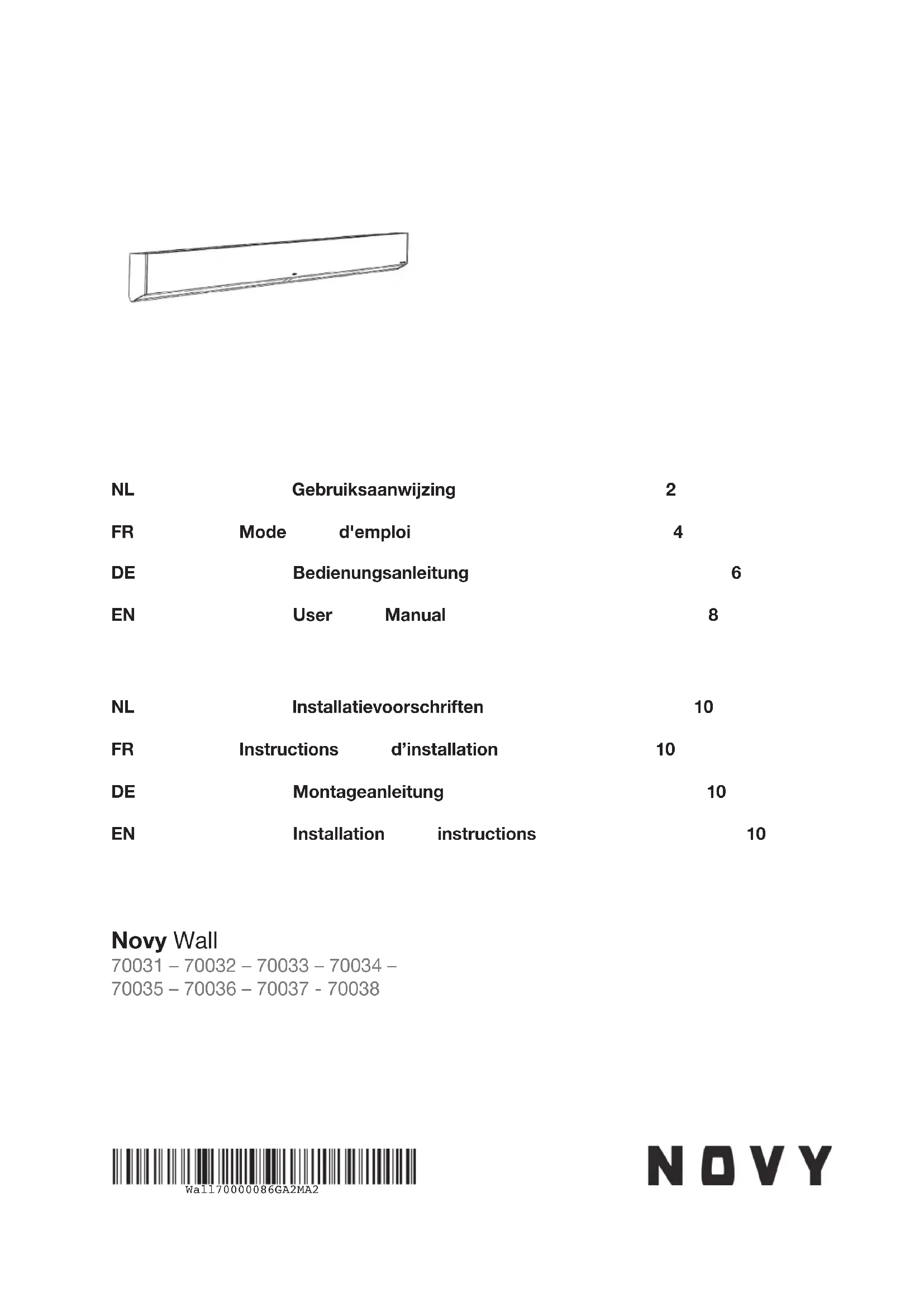 Retrouvez gratuitement la notice de l'appareil Wall 70037 NOVY au format PDF.