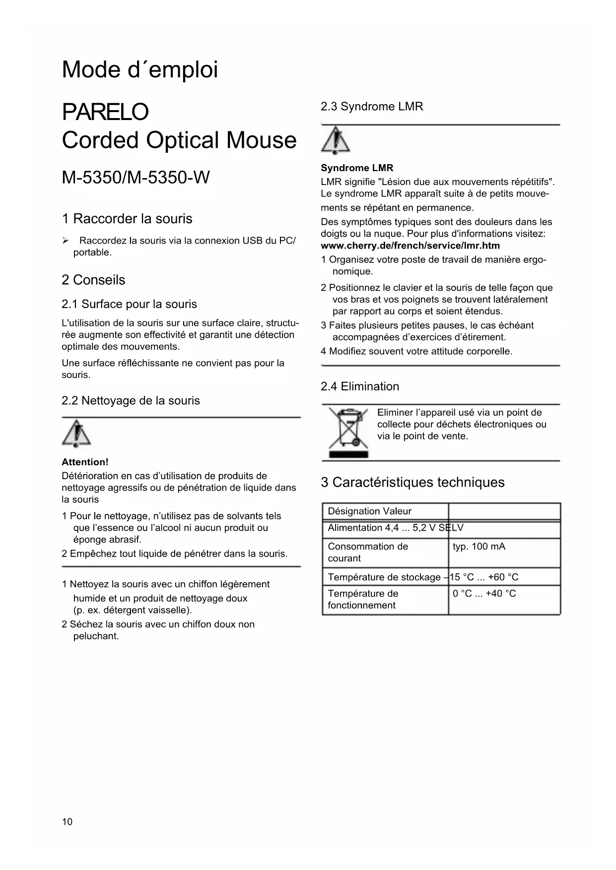 PARELO - Souris d'ordinateur Cherry - Notice d'utilisation et mode d'emploi gratuit
