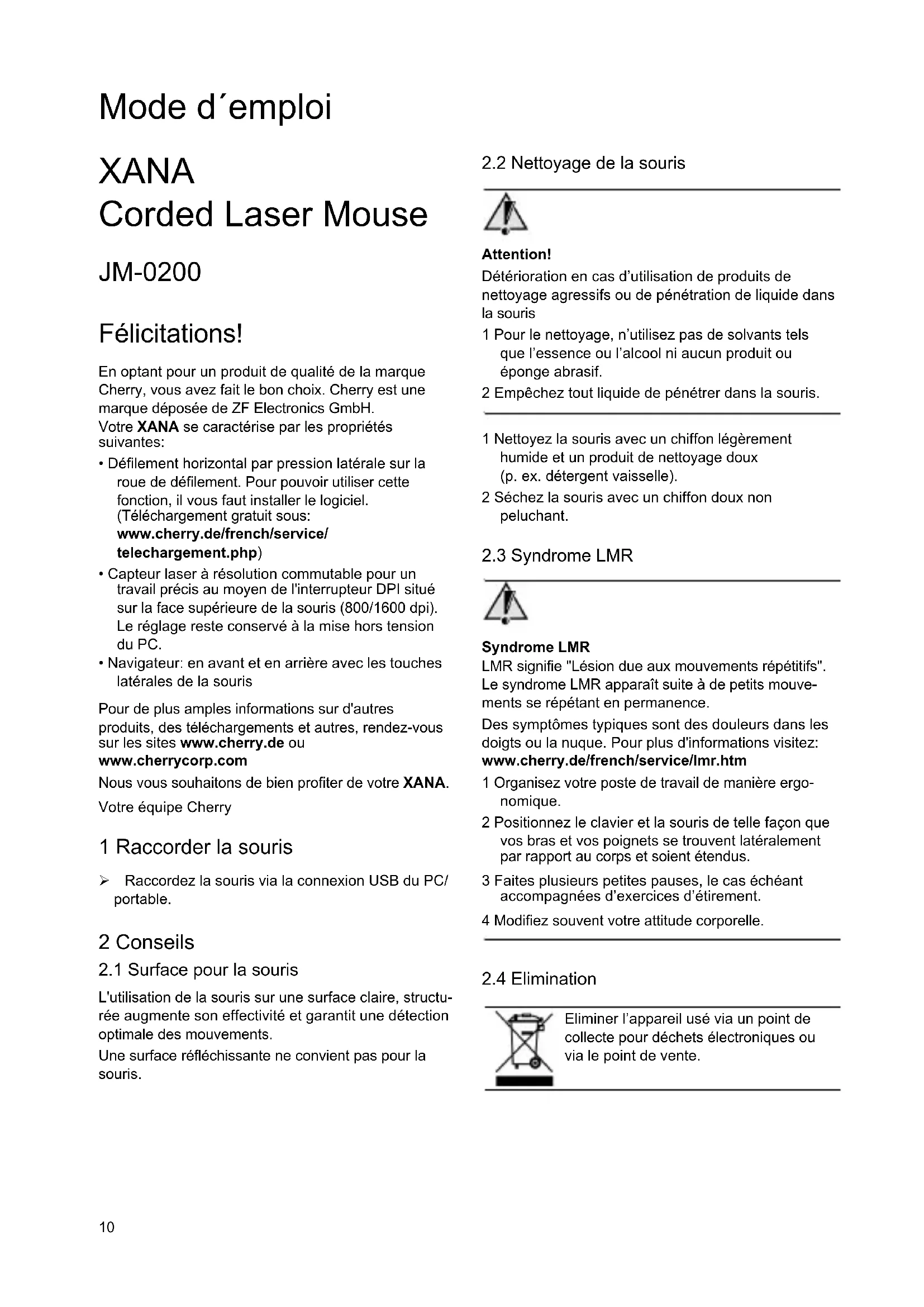 XANA - Souris d'ordinateur Cherry - Notice d'utilisation et mode d'emploi gratuit