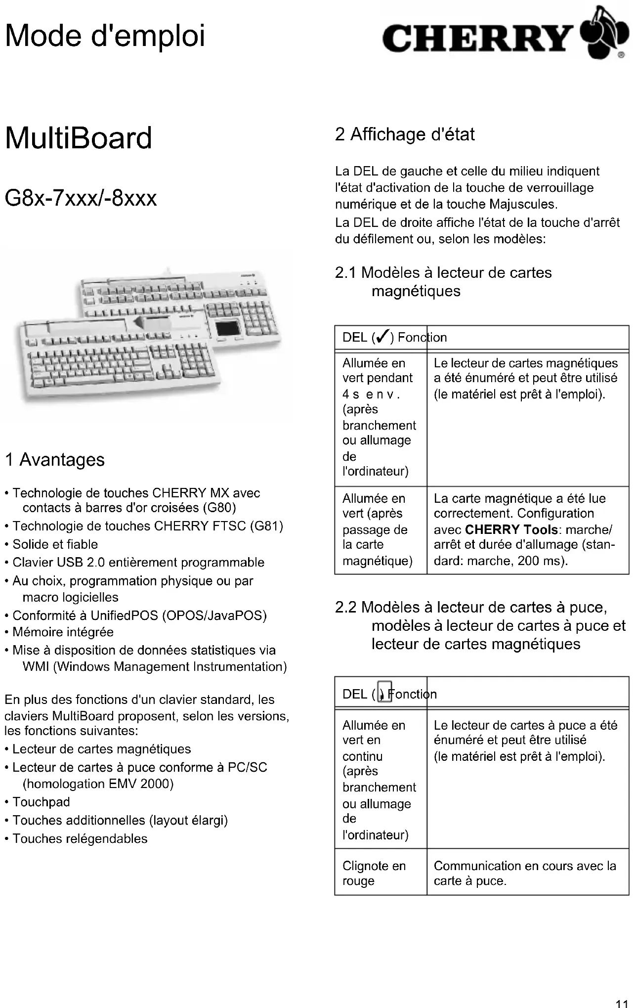 MODE D'EMPLOI MultiBoard G818070LUA Cherry